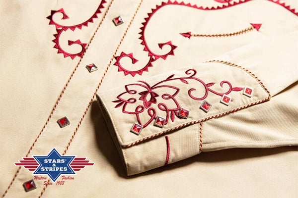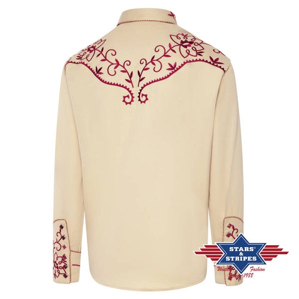 Prachtig westernoverhemd met geweldig borduurwerk op de borst, rug, manchetten en kraag.