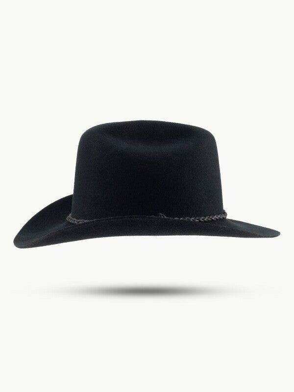 Western charme in perfectie – de Bandera wollen vilten hoed De Bandera combineert robuuste western stijl met tijdloze elegantie. Deze westernhoed is gemaakt van hoogwaardig, weerbestendig wolvilt en biedt niet alleen betrouwbare bescherming tegen de elementen, maar blijft dankzij de vormvaste afwerking ook altijd in perfecte vorm - waar het avontuur je ook brengt. De gevlochten zwart leren hoedband geeft de Bandera een nobele touch en onderstreept de authentieke Western look. Het klassieke silhouet met gebogen rand maakt de hoed tot een veelzijdige hoed die zowel overtuigt voor buitenactiviteiten als voor speciale gelegenheden. Of het nu op het platteland, in de bergen of op festivals is - met de Bandera maak je een stijlvol statement dat functionaliteit en design harmonieus combineert. Deze hoed van wolvilt is een must-have voor iedereen die waarde hecht aan kwaliteit, stijl en traditie.